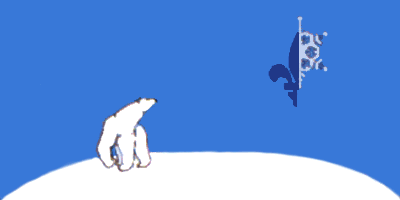 Représentation d'une courbe sur laquelle est placé un ours. Le blanc fait référence à la neige, le bleu à la francophonie. La courbe évoque le 60e parallèle au-delà duquel se trouvent les Territoires du Nord-Ouest, près du pôle nord. Symbole de liberté, de la nature des grands espaces nordiques, l'ours regarde briller le flocon de neige et la fleur de lys, signe du regroupement des francophones en terre nordique.