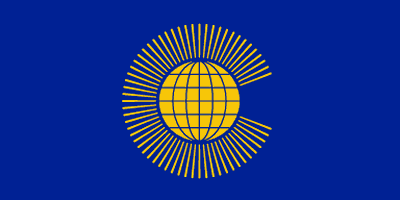 A l'origine, le Commonwealth des Nations était formé par le Royaume-Uni et ses dominions autonomes. Le terme "Commonwealth britannique" commença à être utilisé après la Première guerre mondiale. En 1949, le nom fut changé en Commonwealth et en 1965, le Secrétariat du Commonwealth s'établit à Londres. Au total cinquante-quatre pays indépendants de toutes les parties du monde appartiennent au Commonwealth. Le drapeau porte la lettre "C" (première lettre de Commonwealth) qui encercle un globe central, symbolisant l'étendue de l'organisation. Le nombre de lignes formant la lettre ne correspond pas au nombre des états membres.